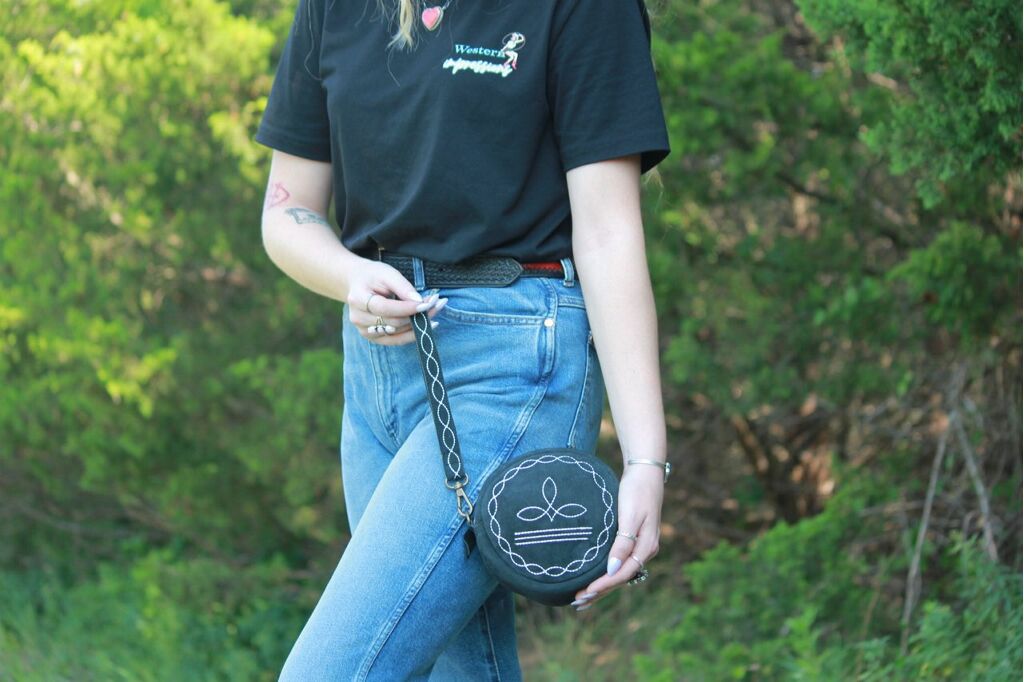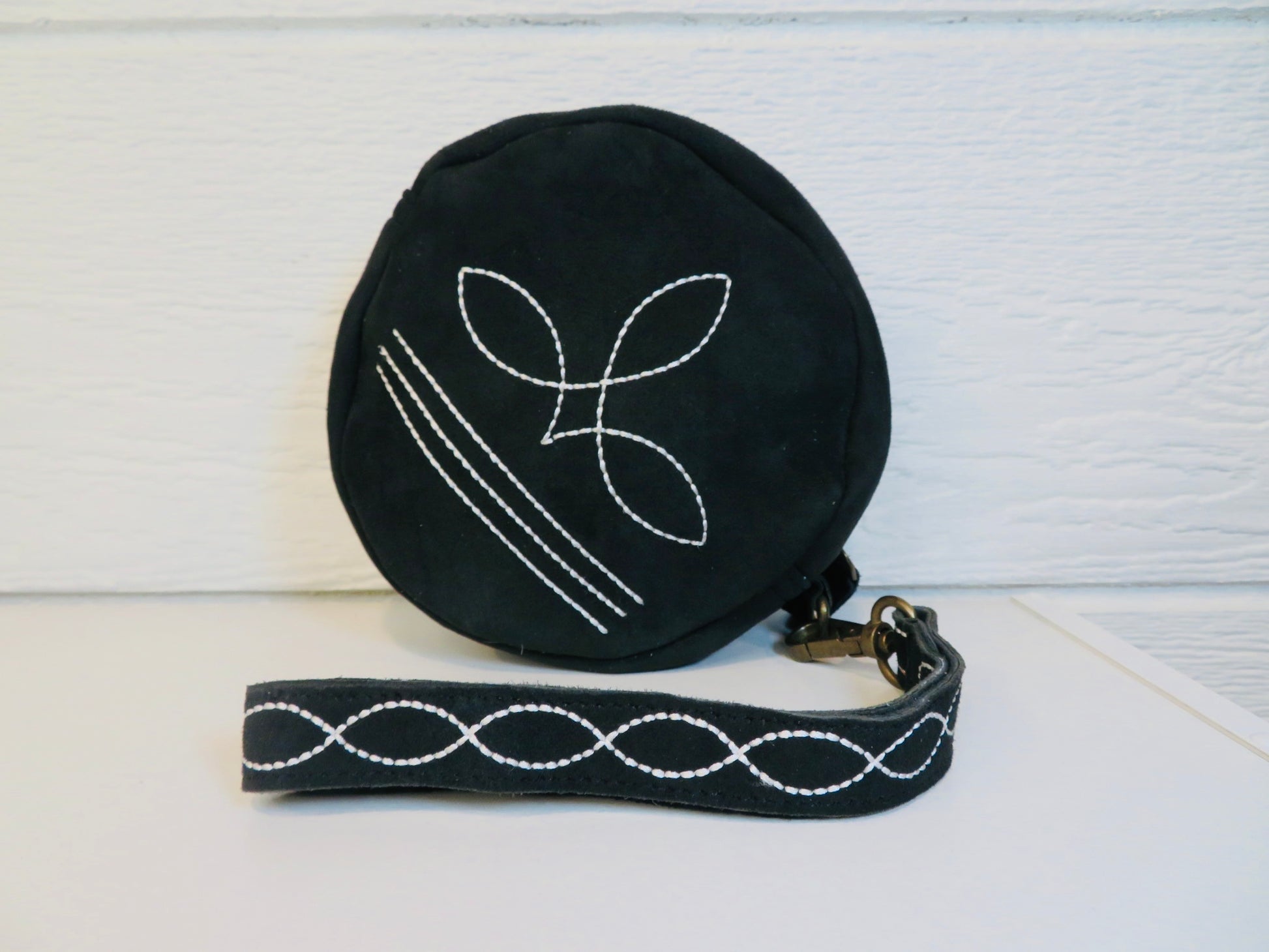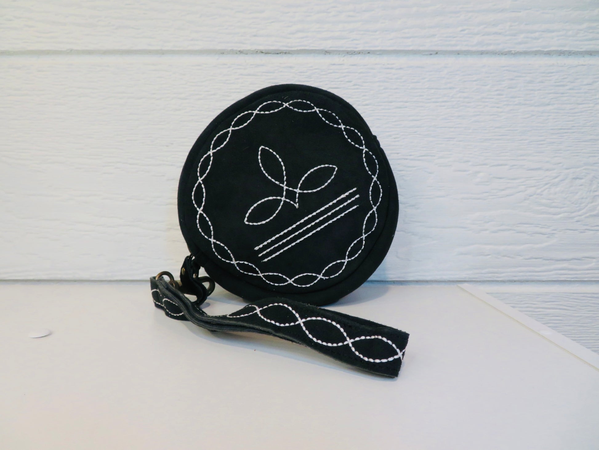 6 inch round wristlet/purse with bootstitch