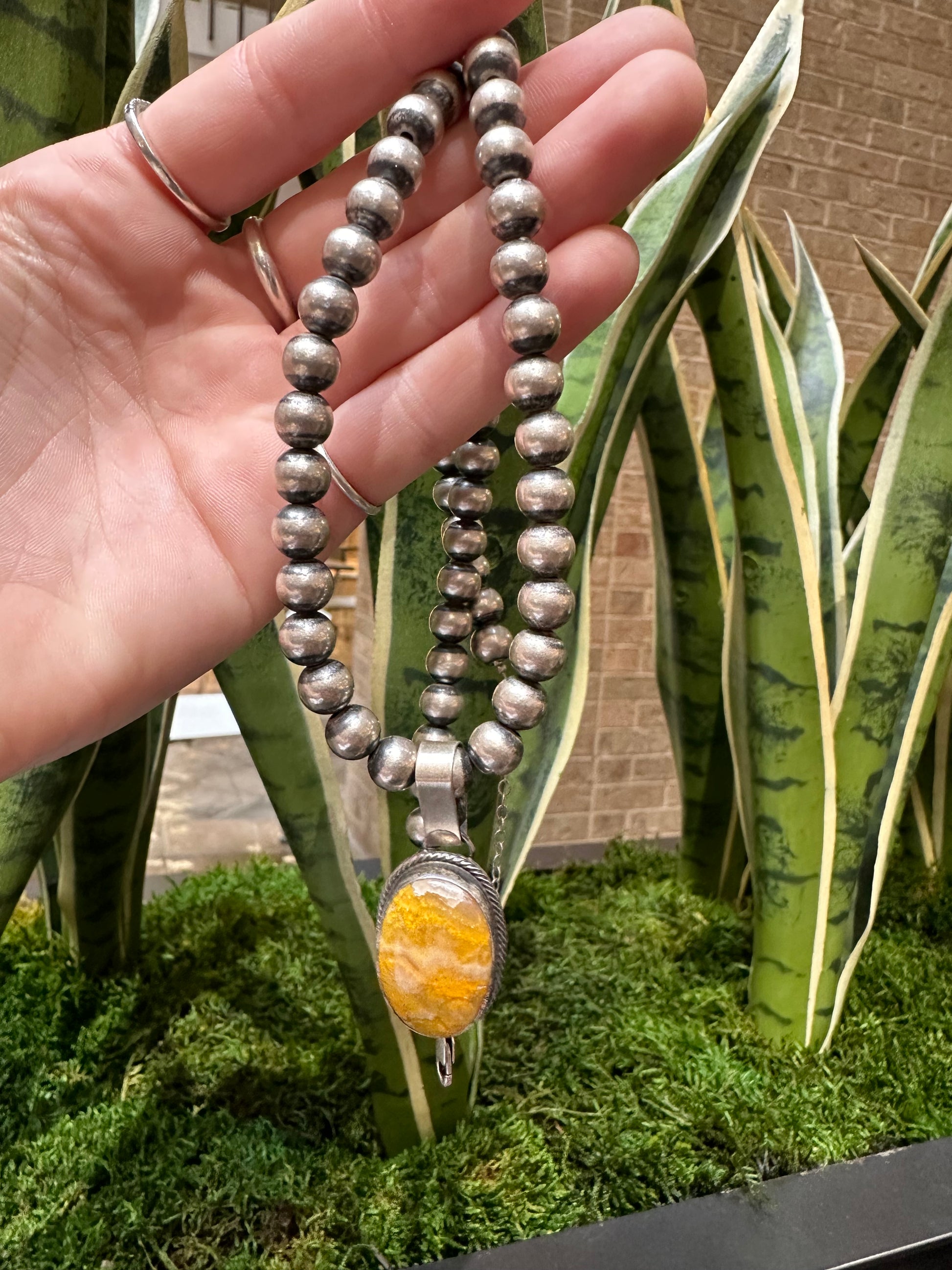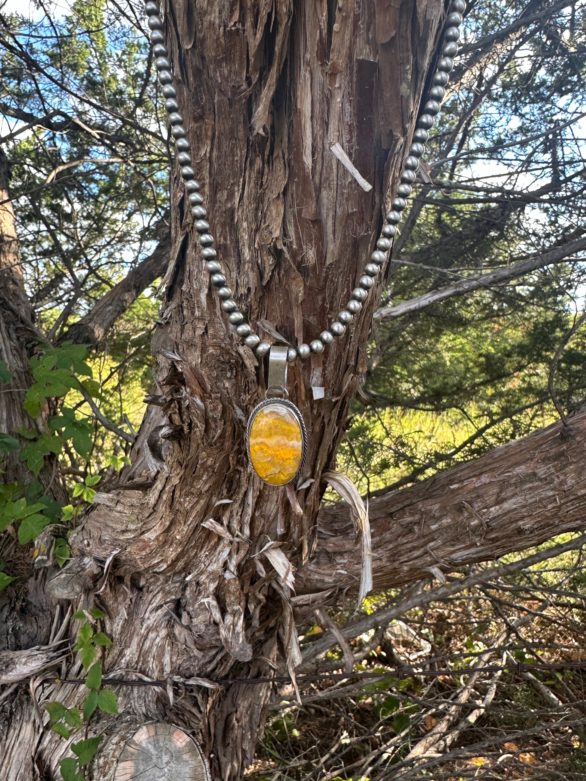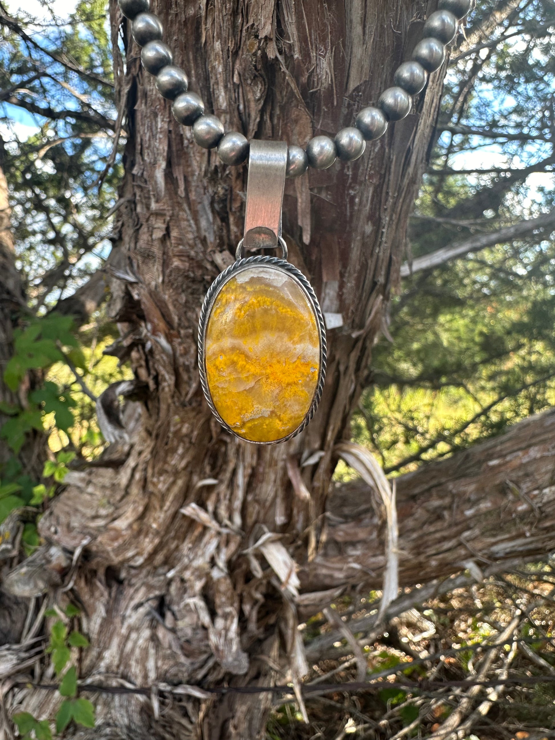 Pendant only Navajo handmade stamped sheryl Martinez bumblebee Jasper pendant can fit up to an 8 mm pearl