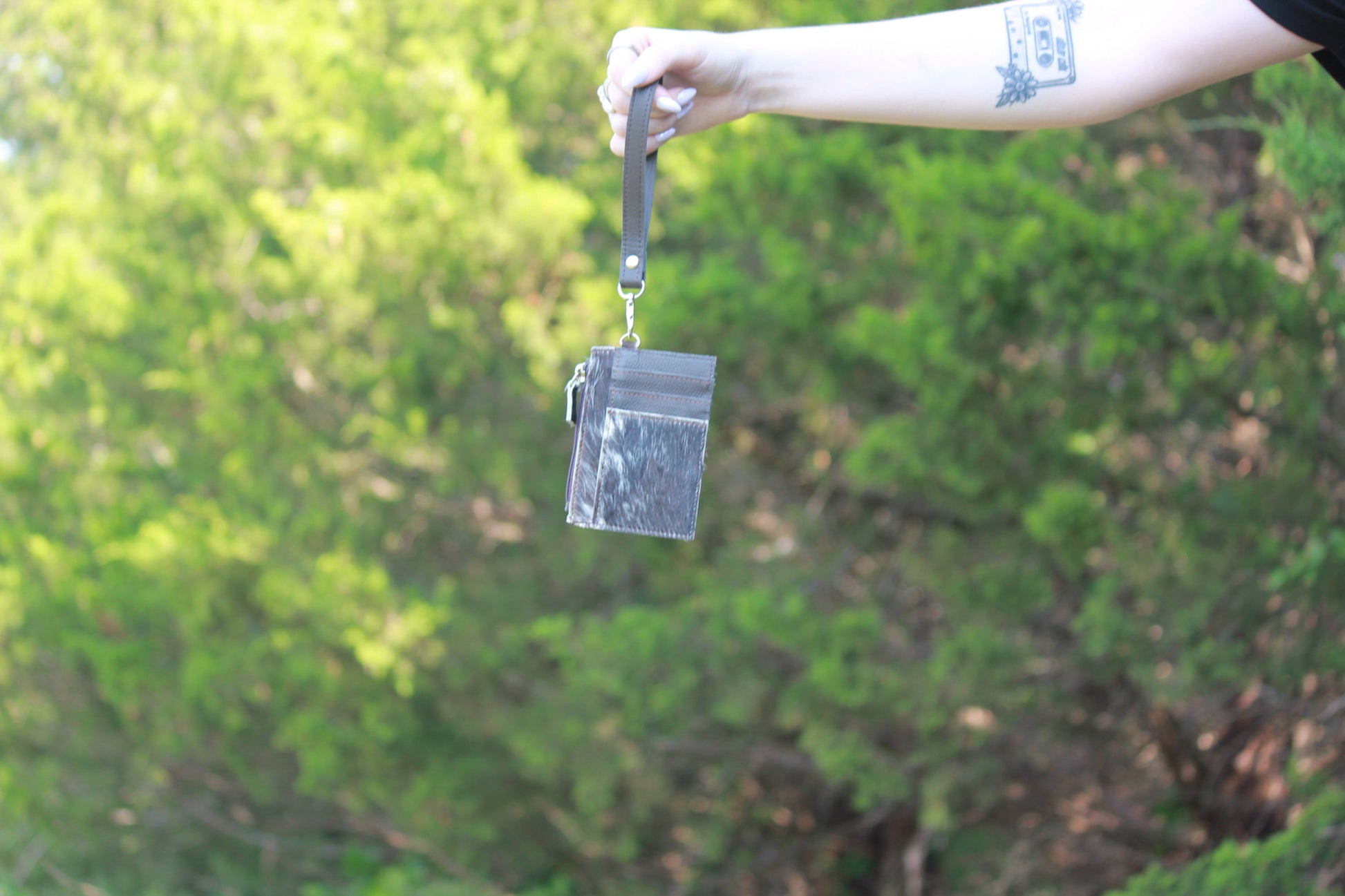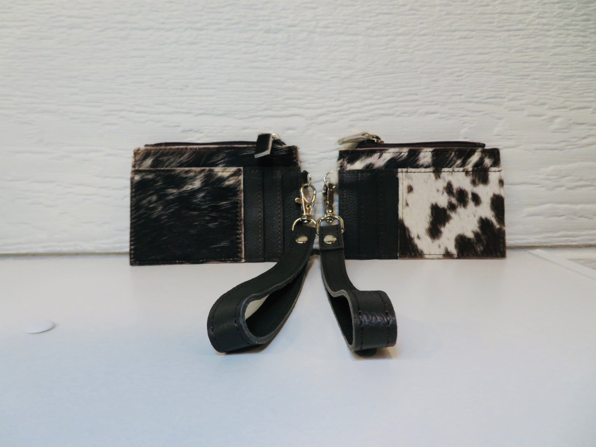 Chocolate brown leather and cowhide card wallet