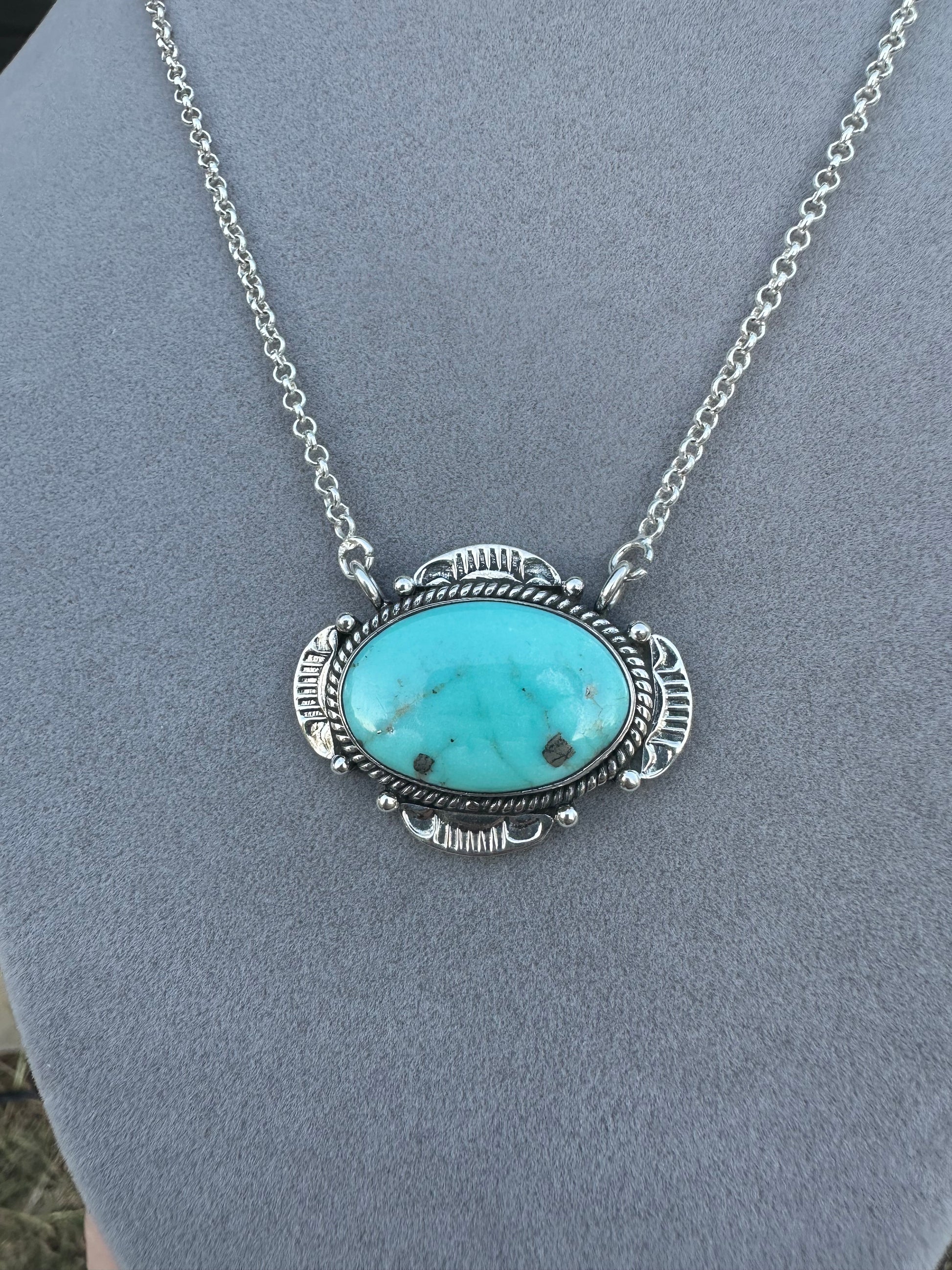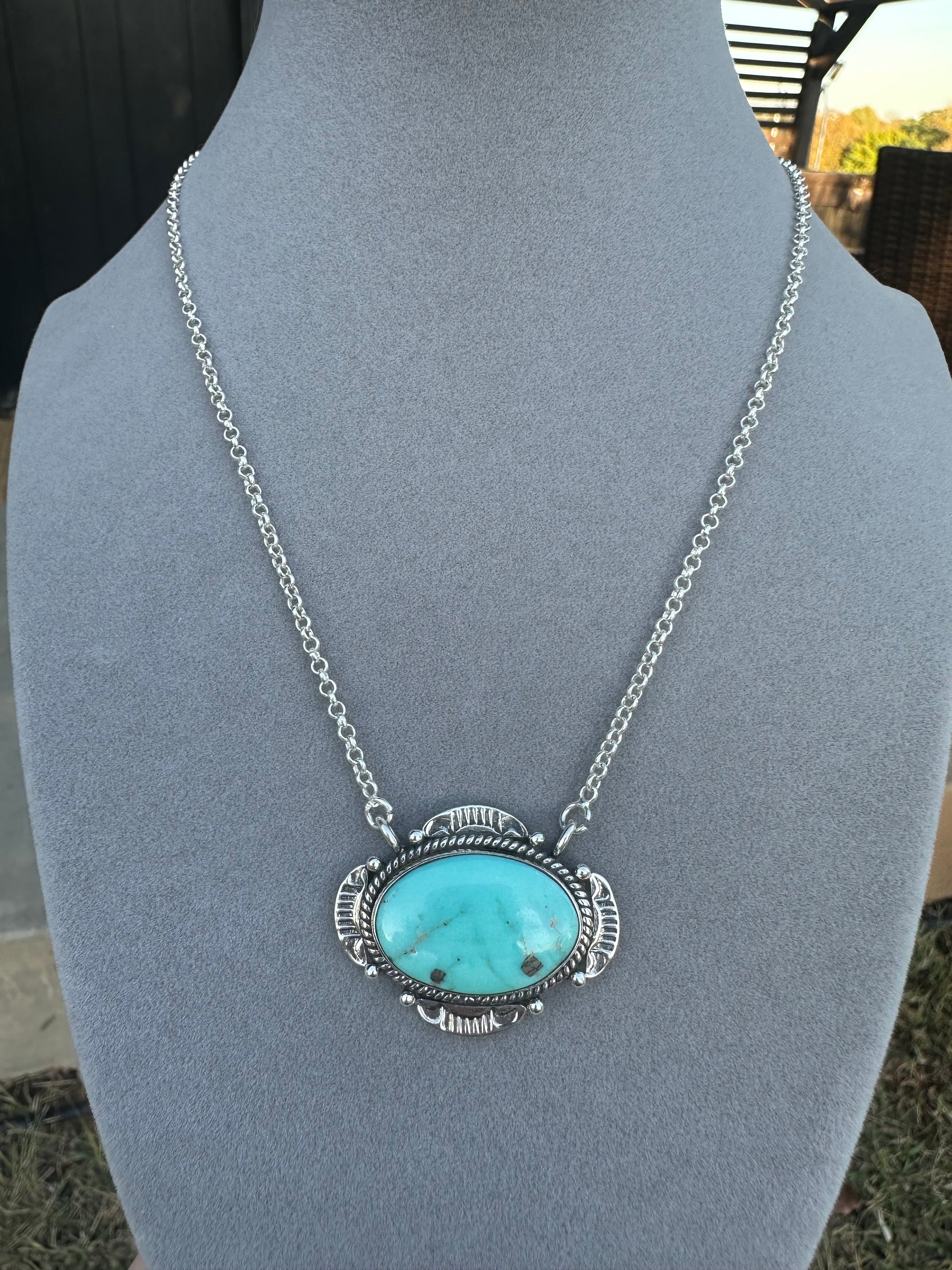 Thunder Mountain turquoise stamped sterling silver Lobster to other end of necklace 17 inch +2 inch extender