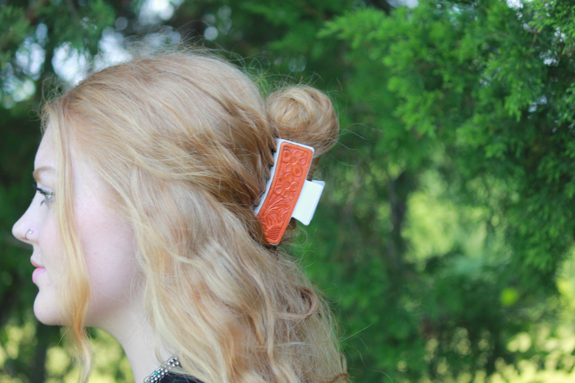 3 1/2 inch leather patch hair clips.. sold as singles