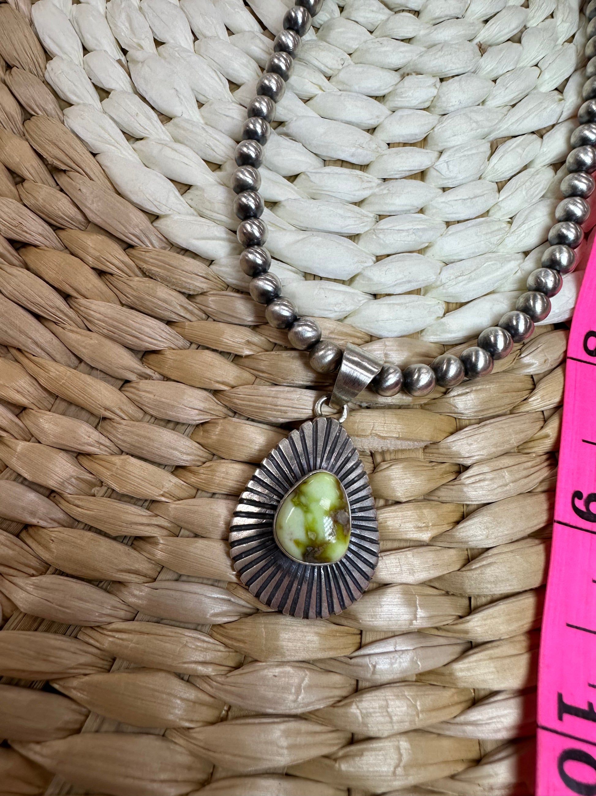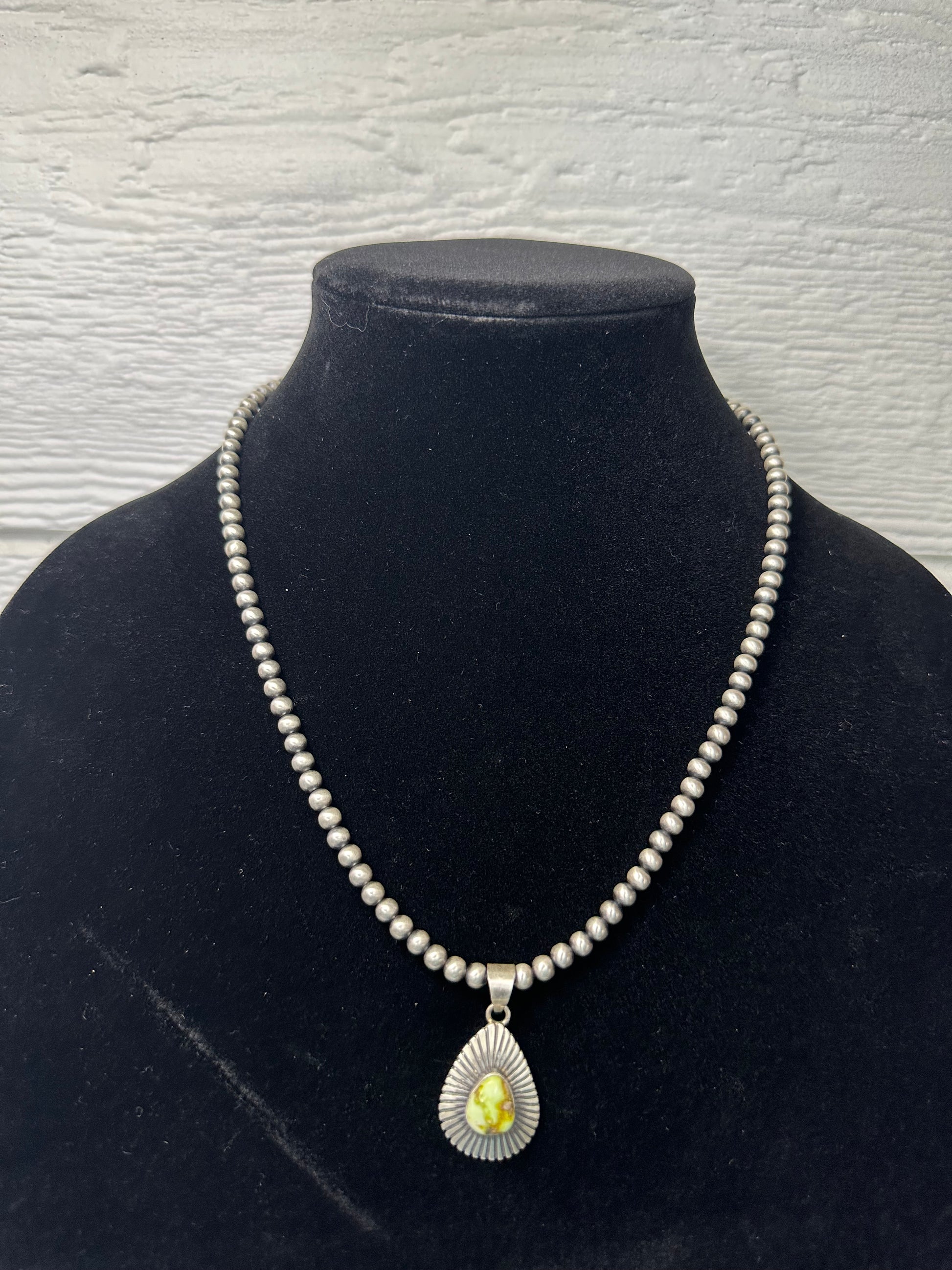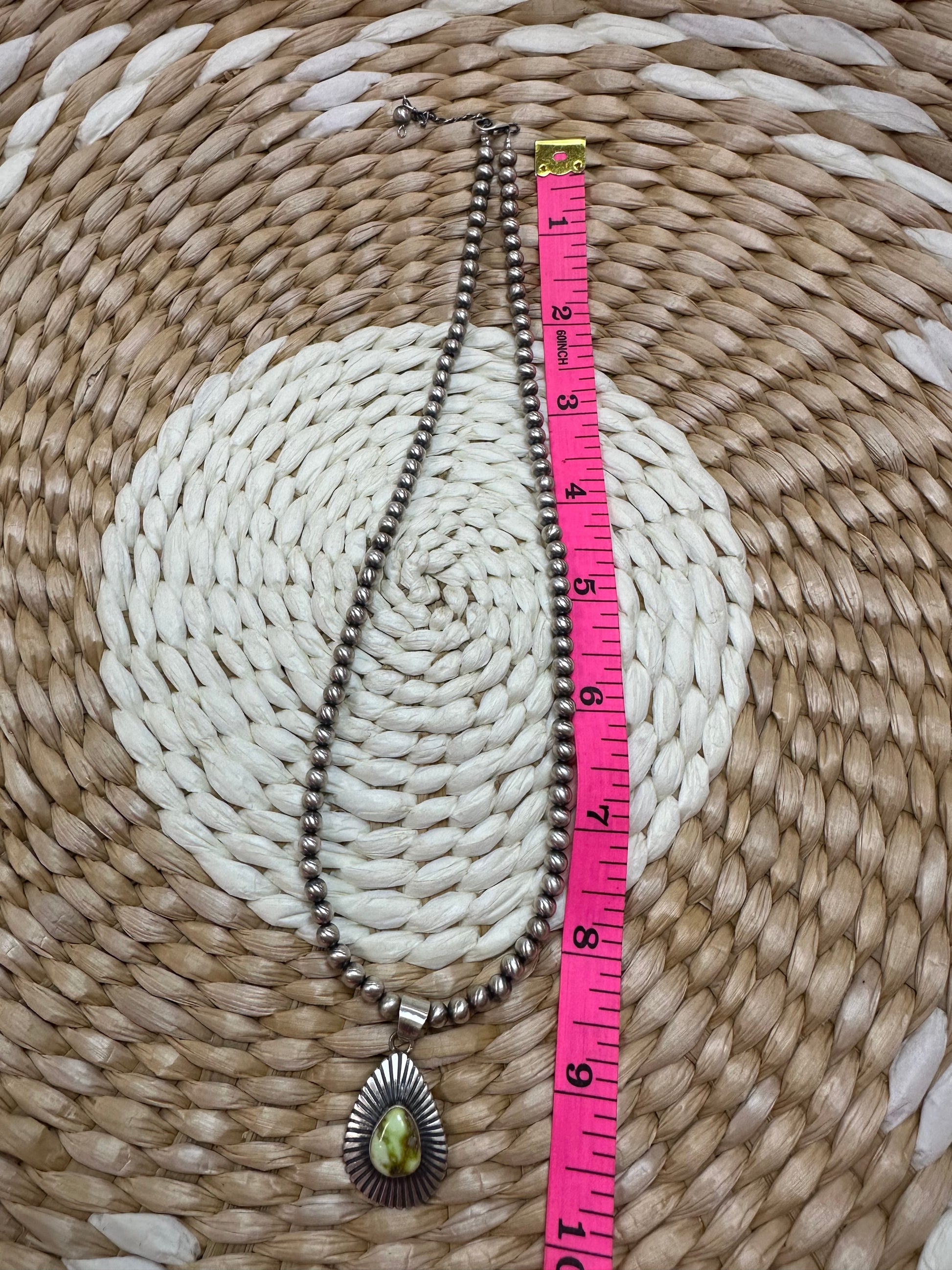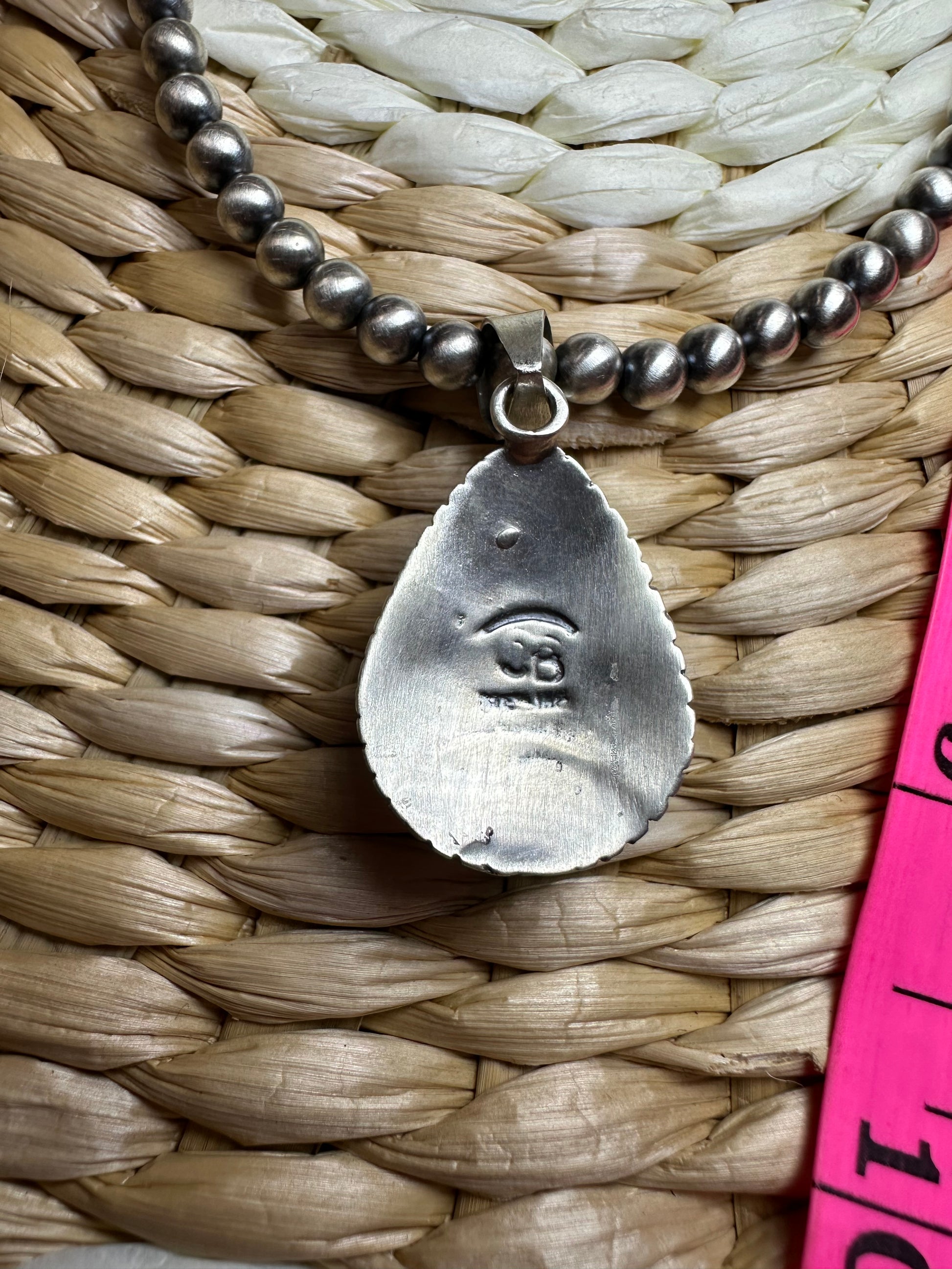 18 inch 5 mm Plus extender sterling silver pearls and palomino handmade by Navajo artist Charlie Begay