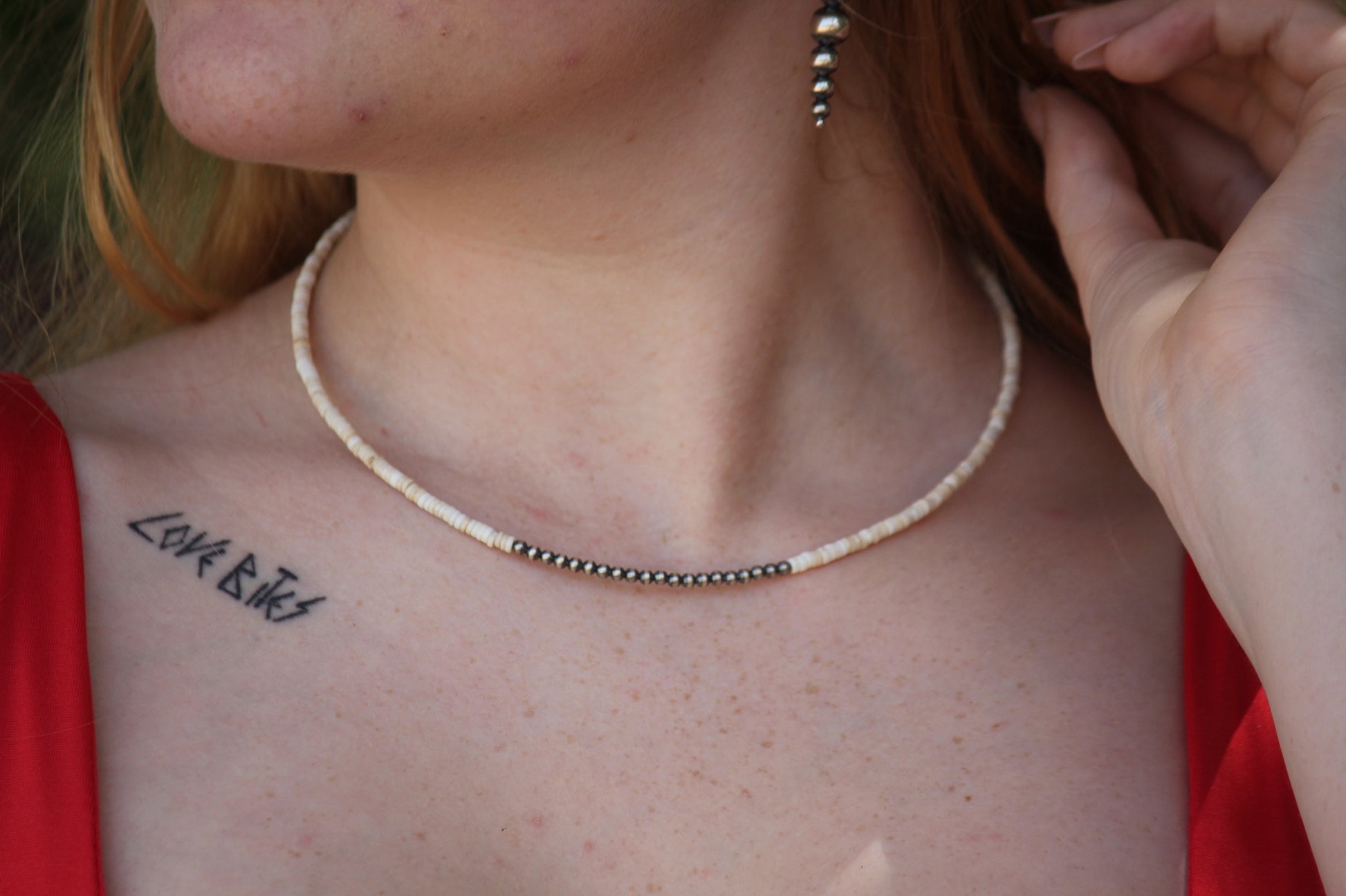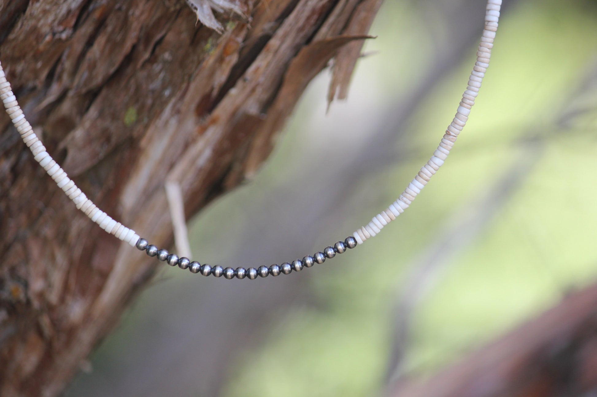 3 mm sterling, silver pearls and magnetite 14 inch choker with 3 inch extender