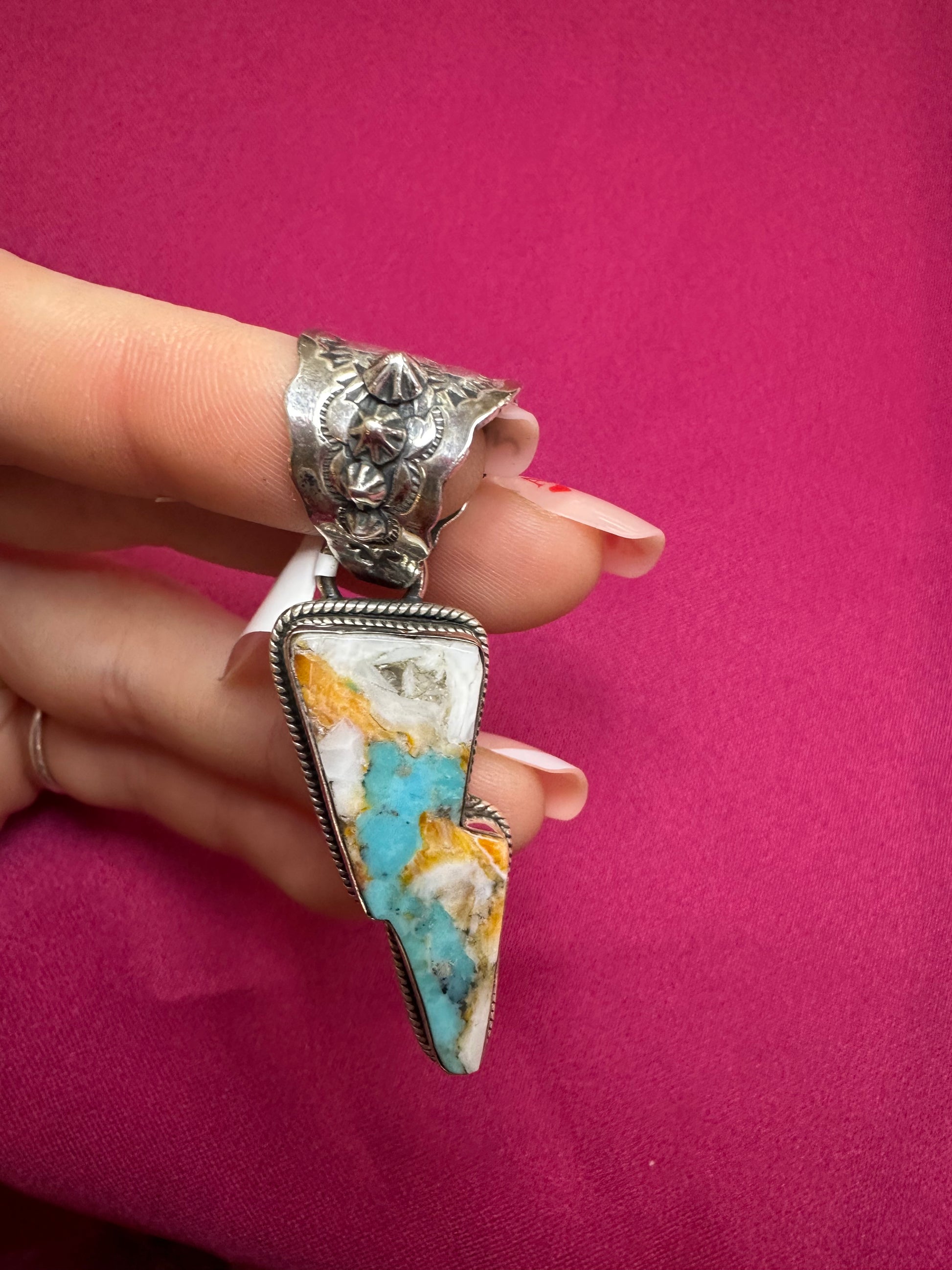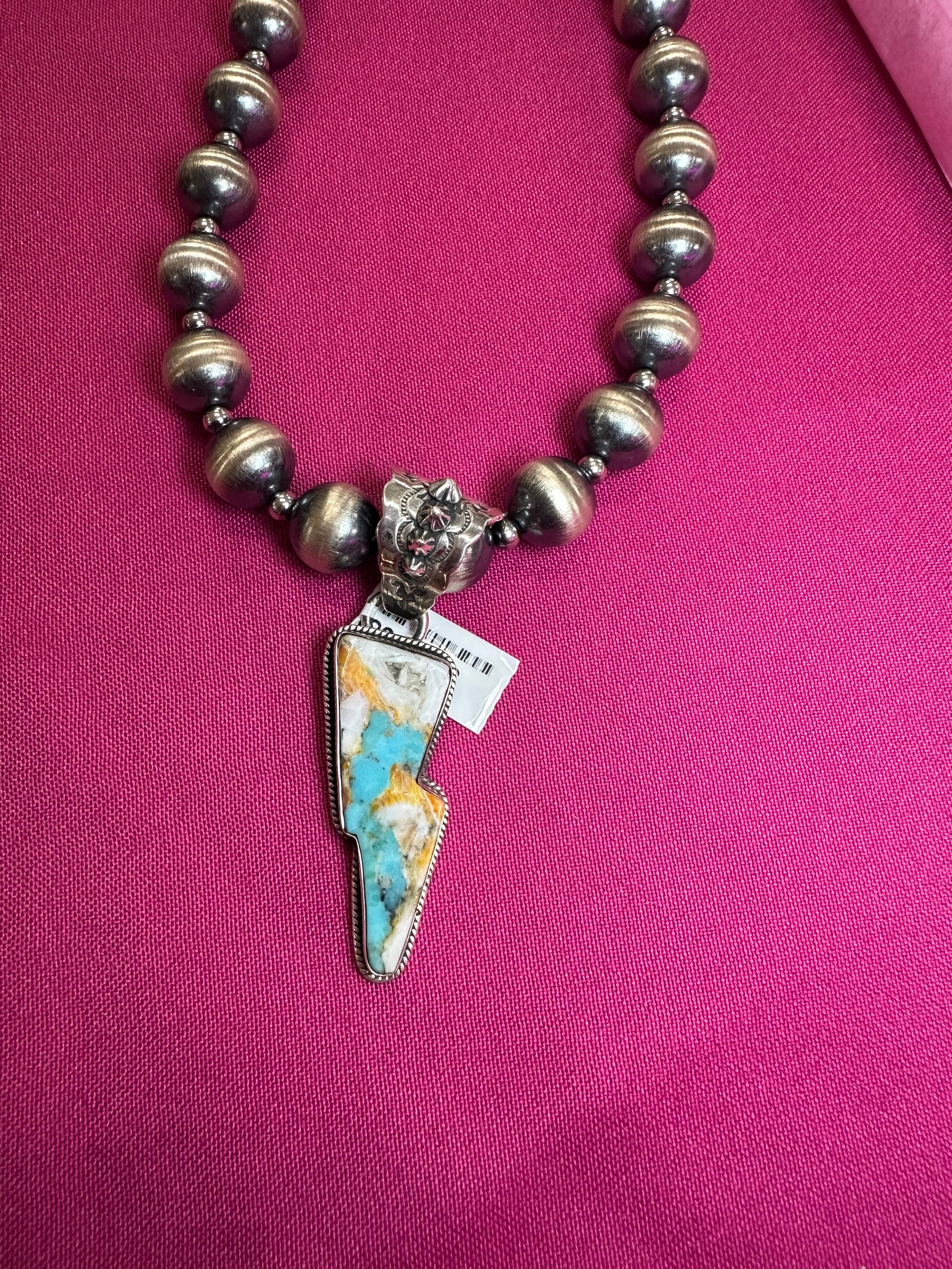 2 1/2 inch spiny and turquoise stamped sterling can fit up to a 14 mm silver pearl necklace not included