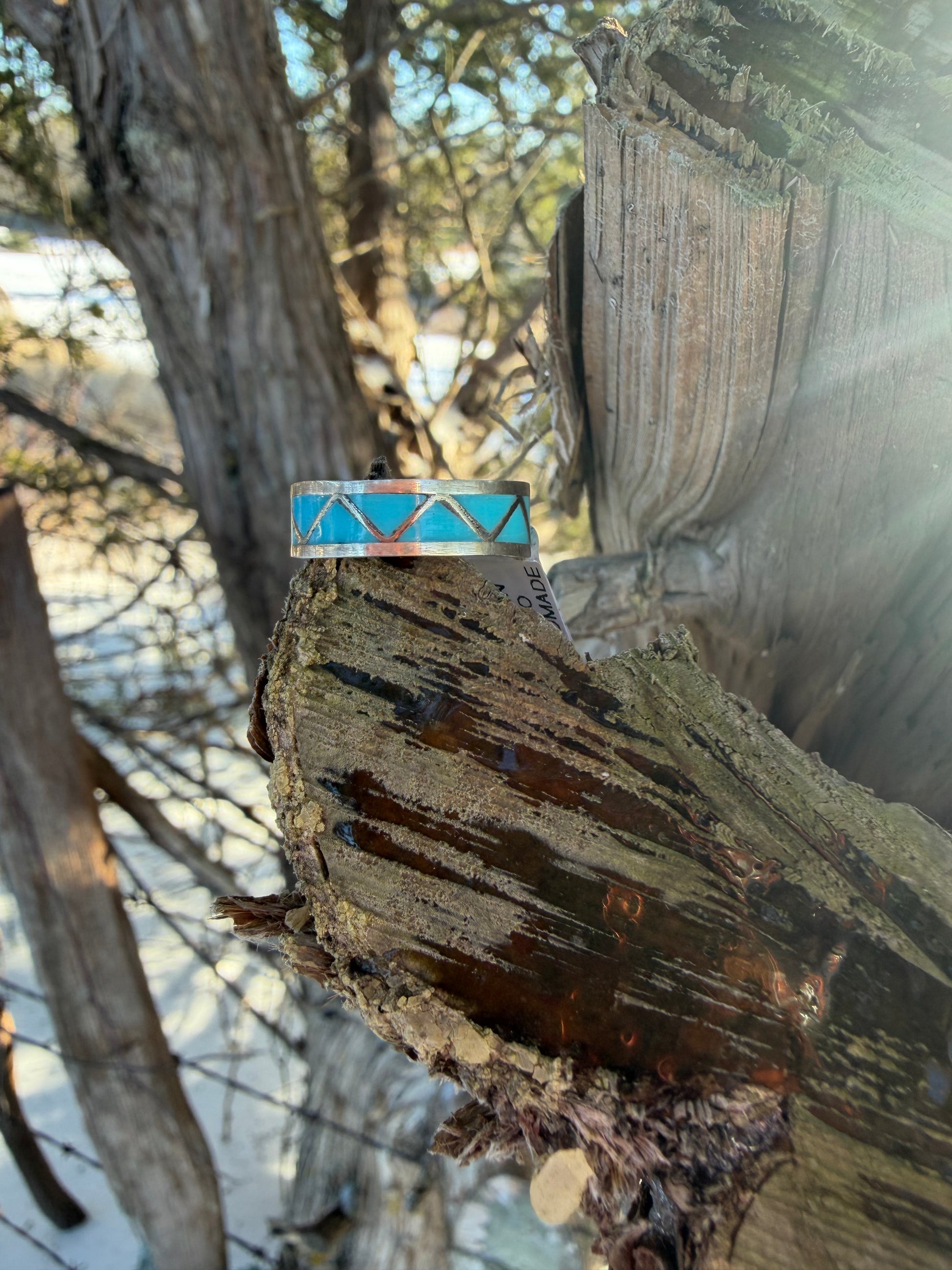 Size 7 sterling silver and Kingman turquoise native made by Roger Morgan